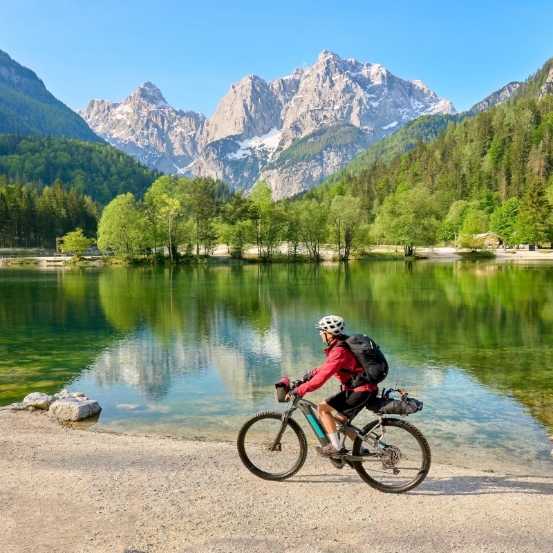 Slovenia offers moderate climbs and long valley sections. Routes can be challenging but are not extreme. E-bikes are widely supported and suitable for alpine sections.